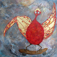 Because birds are the symbol of space and freedom, because these ones, roller-skating, symbolize our crazy rush...