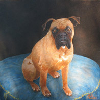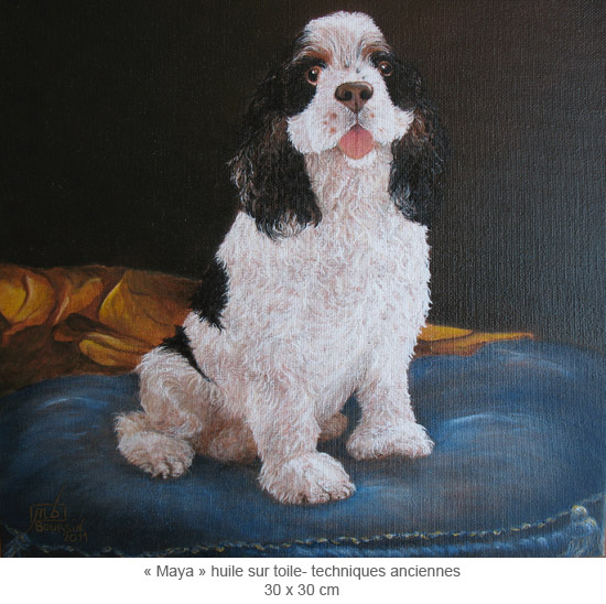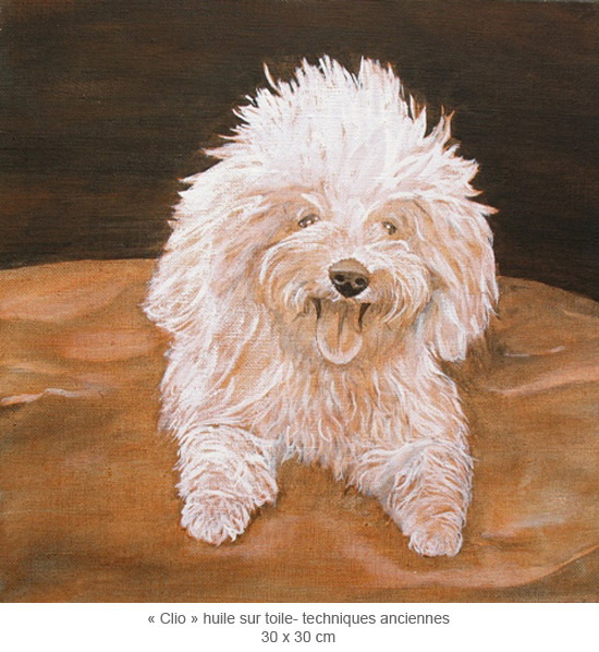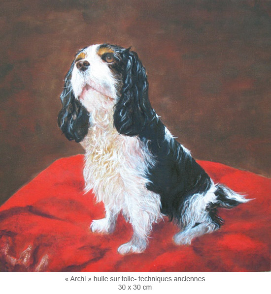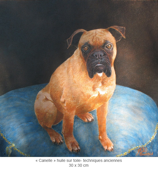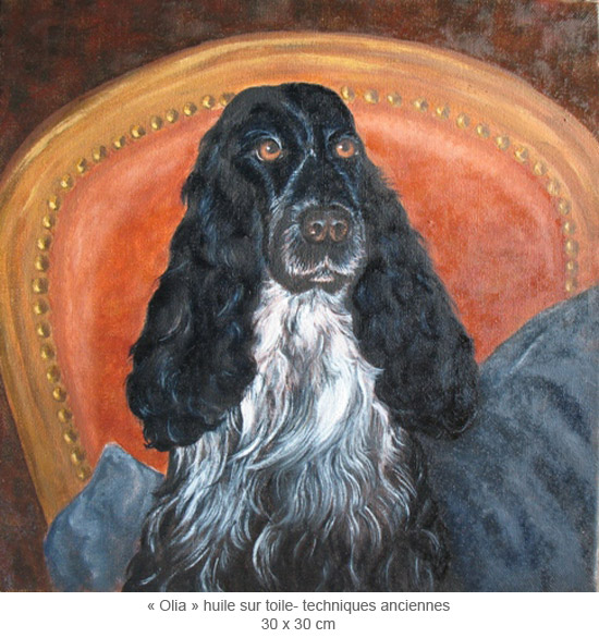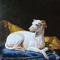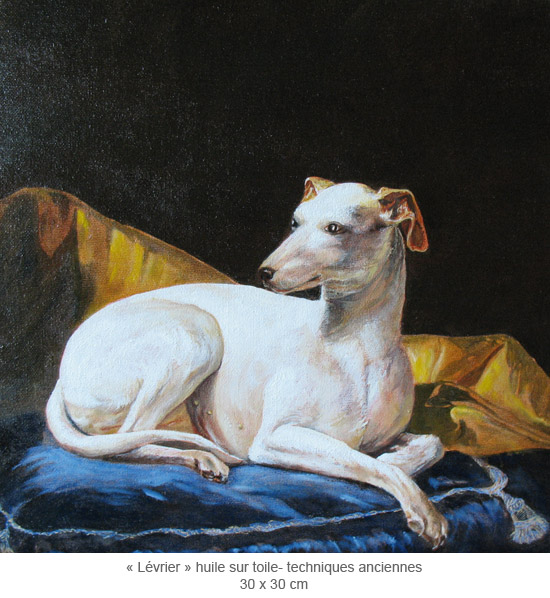 Exceptionally, and just in order, Muriel also paints dogs' portraits in the eighteenth century style with old techniques like tempera, pigments, linseed oil...