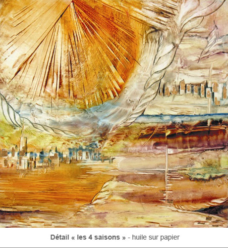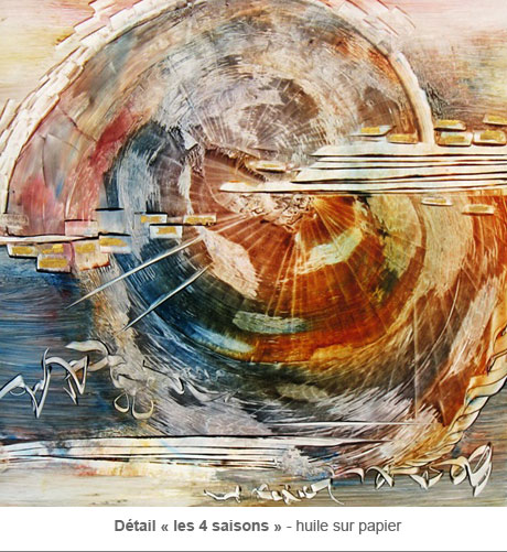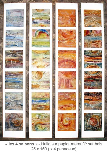 « Eventually, symbols spontaneously spring forth... transmuting things through alchemy... gold expressing how sacred life is... « the four seasons », or « flic-floc » representing our journey on earth. »